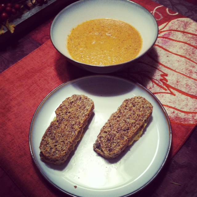 Hello everyone! I know that I haven’t posted in awhile, but with the holiday season upon us, things get just a bit crazier. I also like to spend time with my friends and family, away from the computer and all other social media. It’s nice to unplug and enjoy the company of real humans! That being said, I do have a new recipe for you! One of my favorite meals as a kid was tomato soup and grilled cheese. I had a hankering for it the other day, but I wanted to make it in a healthier way (read: not from a can or with mounds of cheese). I used cashews to add the creaminess to the soup and I think that this meal was a winner in the Dawson house! Plus you can make it in the slow cooker, what’s better than that?