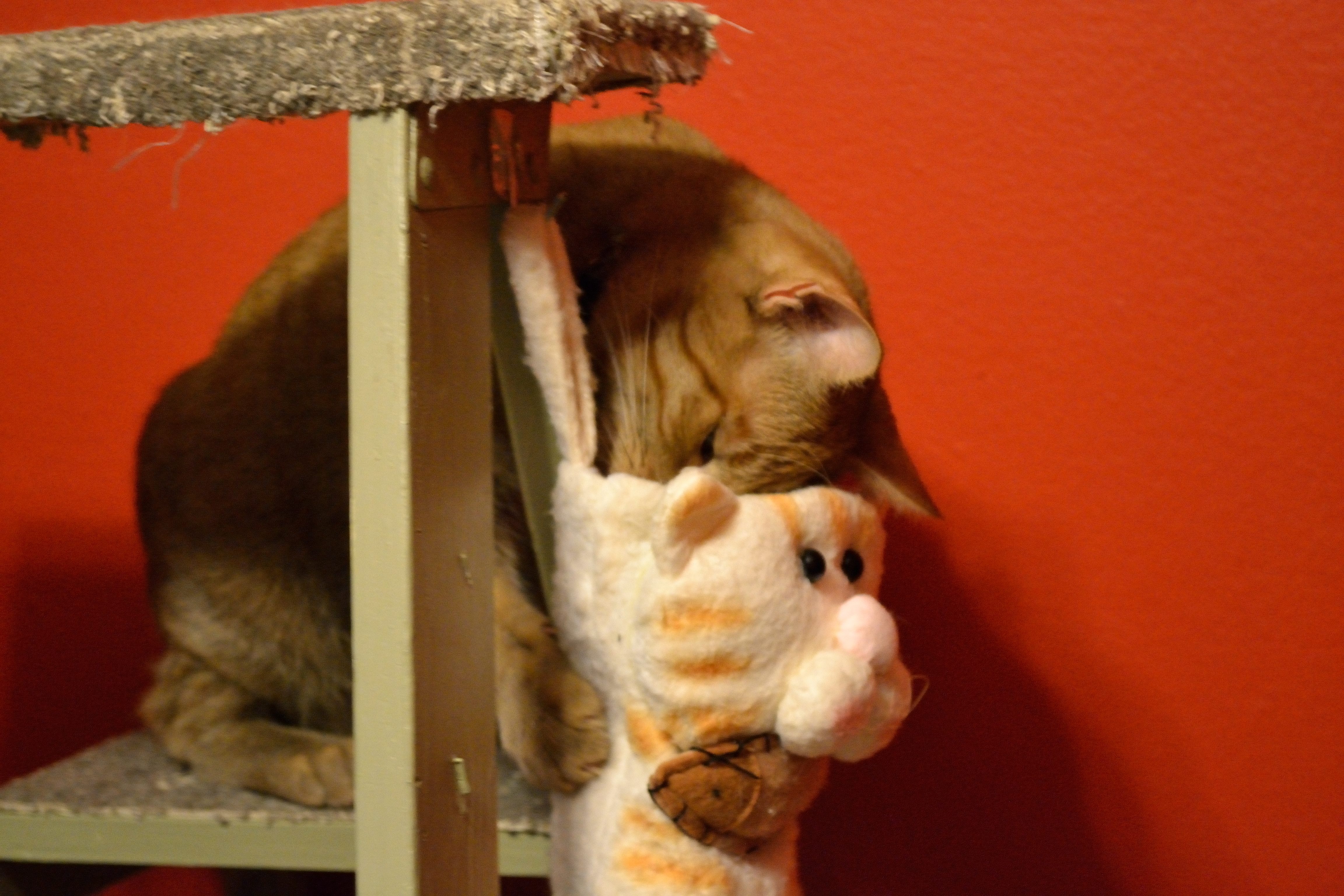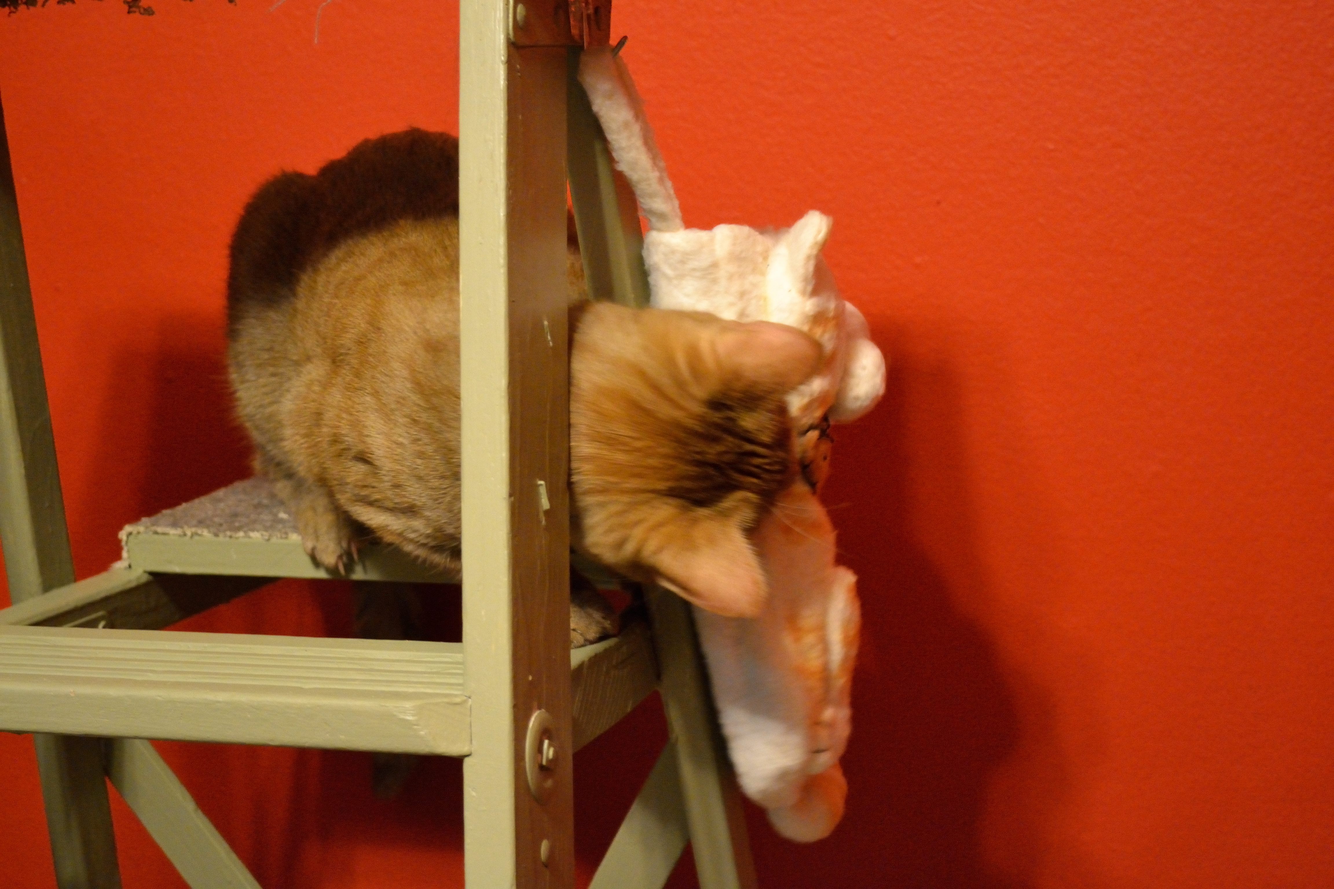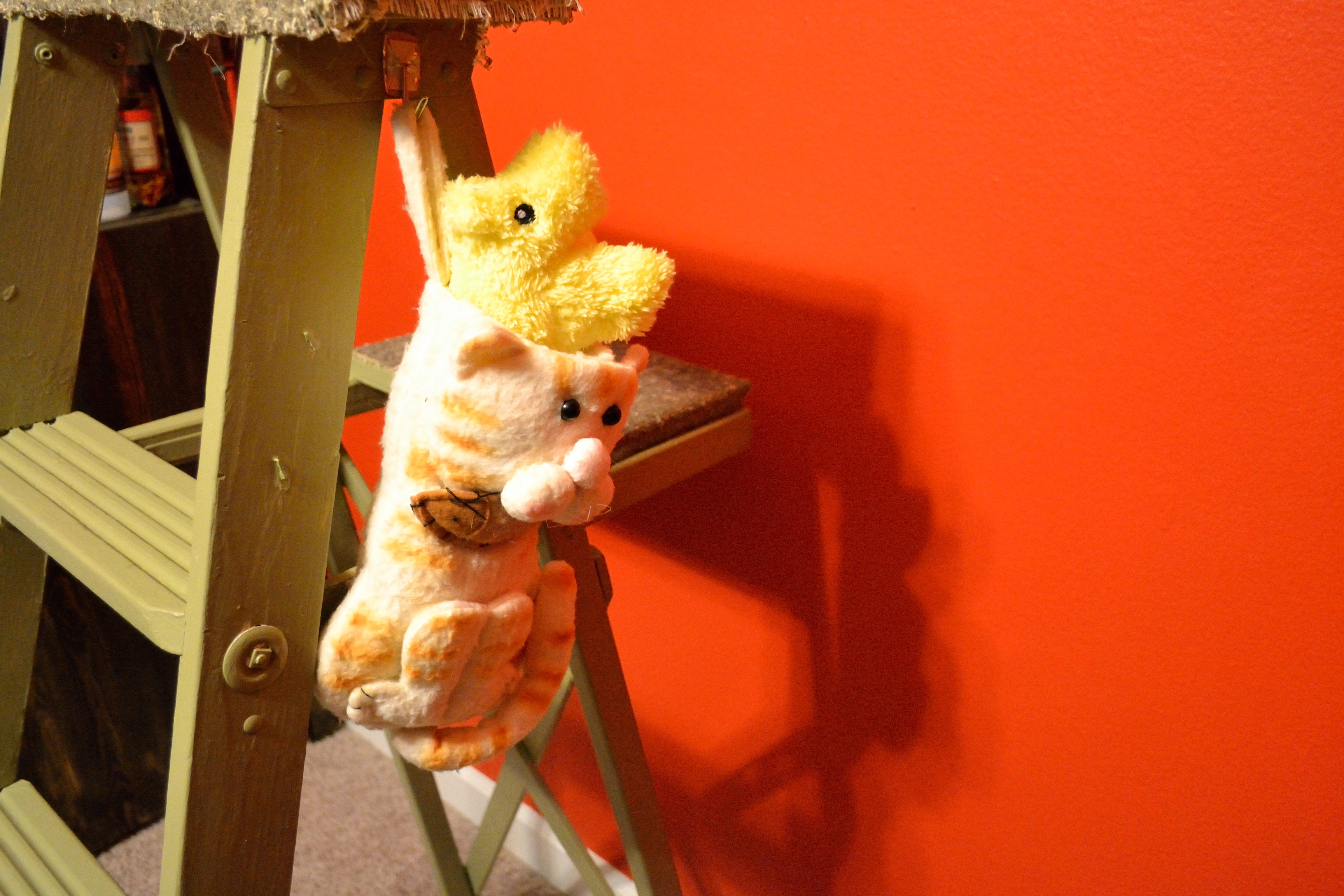Speaking of cats, of course they have their own stocking and we fill it with new toys for them. Olaf actually managed to get all of the stuff out of the stocking all on his own. He liked the laser pointer and this yellow stuffed dog the best.