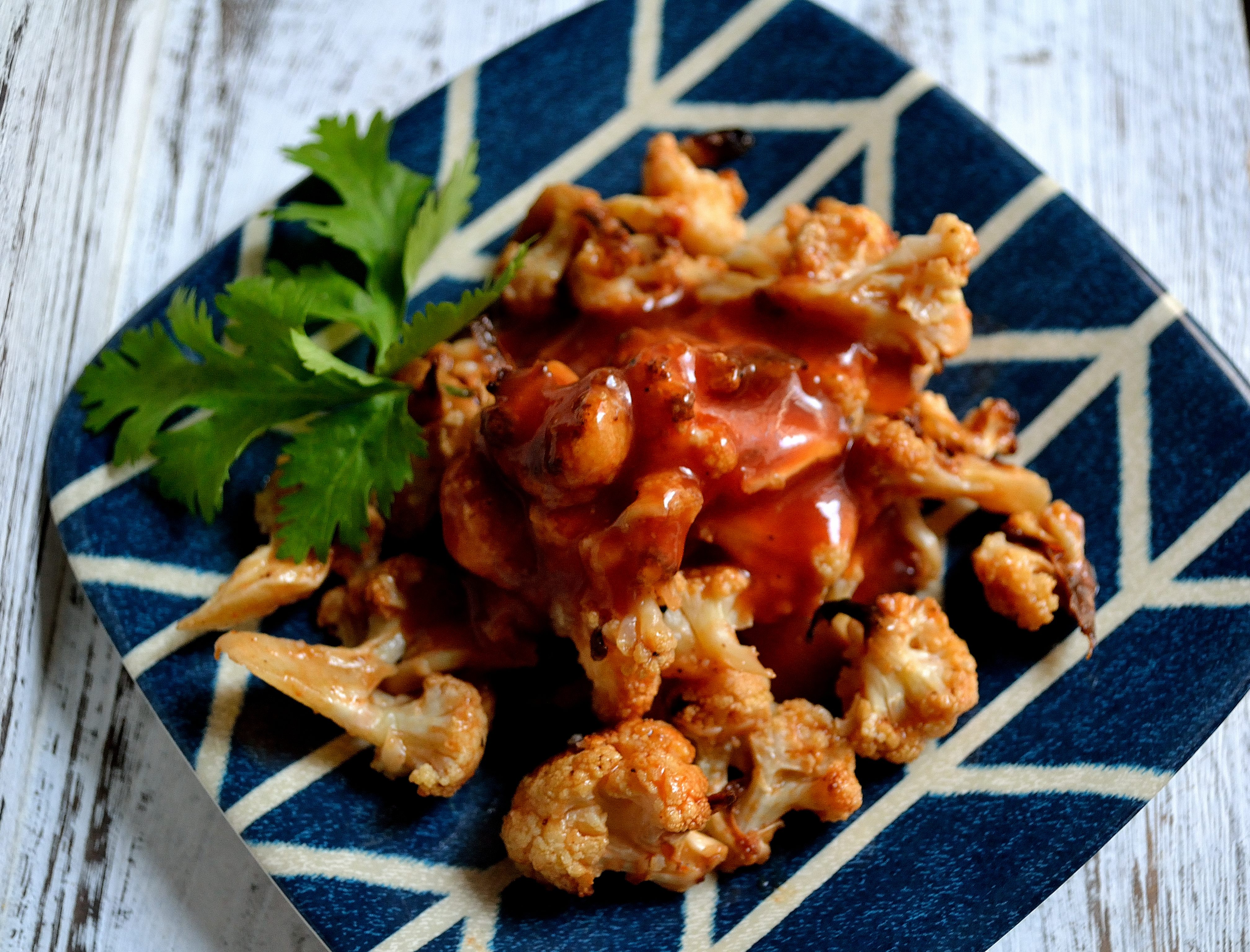 like how that one just rolls off the tongue. Sweet and sour cauliflower. I also love how delicious it tastes and amazed at how close the sauce is to take-out sweet and sour. When I decided to try this idea out I was totally ready for a complete failure, but Adam gave it his seal of approval. Since he is the only one around to taste my food I have to trust his palate and it’s usually pretty good. He deemed this one blog-worthy so you guys get to taste the yummy.