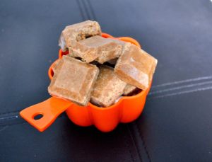 3. Either on a baking sheet lined with wax paper or silicone molds (I used a silicone ice cube tray) scoop out about 2 teaspoons of the candy mixture. Place the baking sheet or mold in the freezer for at least an hour. Remove and keep the candy in a container in either the fridge or freezer.